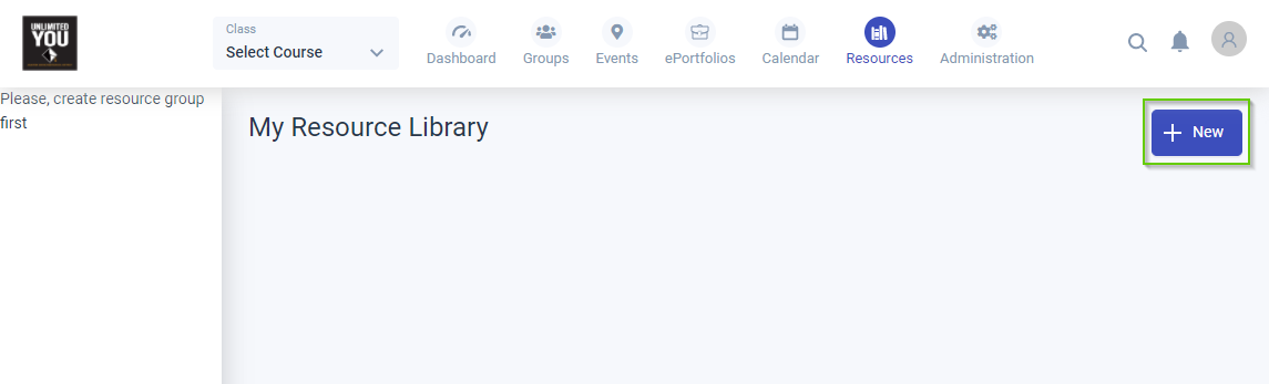 - Navigate to the Resources via the corresponding icon available in the top toolbar to get started.