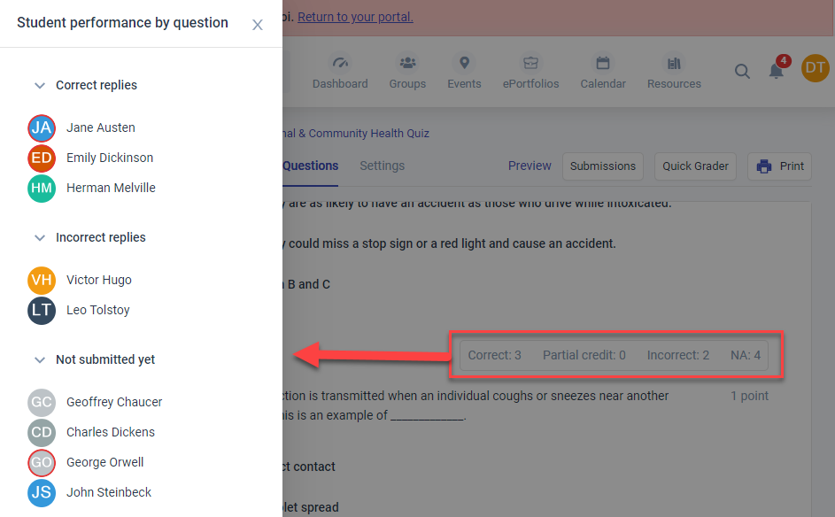 - View summary of student performance by question for auto-graded questions