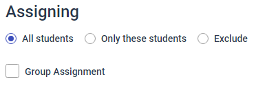 Note: For the 'Assign to only certain students' and the 'Exclude assigning' settings, after selecting one of these options, teachers will then specify which students by check-marking them.